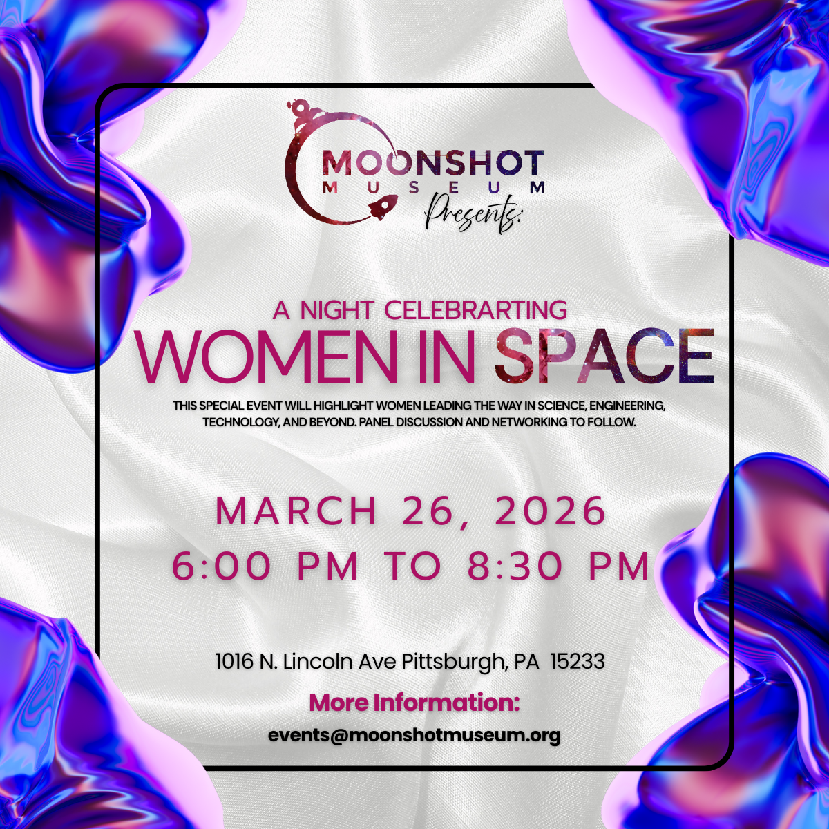 Join us for the grand opening of Moonshot Museum! We'll start our first-ever day open to our community with a special event showcasing local and national leaders including County Executive